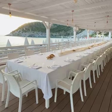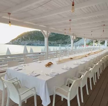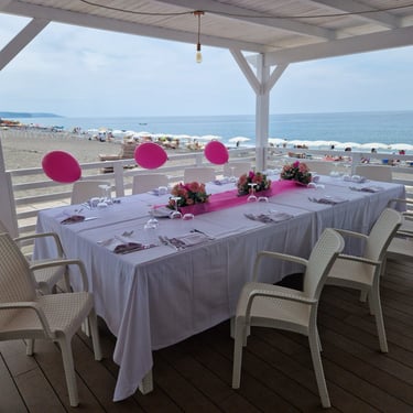 Troppe feste si somigliano: locali chiusi, poca atmosfera, zero emozione. Il vero errore? Credere che una location valga l'altra. Noi trasformiamo ogni evento in un'esperienza unica: compleanno, diciottesimo, addii al celibato/nubilato, pranzi aziendali, ecc... con il mare a due passi, il tramonto negli occhi e la sabbia sotto i piedi. Allestimenti eleganti, cucina vista mare e un'atmosfera rilassata ma curata rendono ogni momento speciale. Tu sogna al resto pensiamo noi!